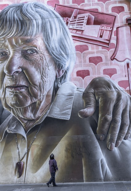 As striking as this larger than life street mural in Melbourne is, I waited for a real life figure to walk past and stop momentarily, to underline its scale. Technical specifications: Sony A7III, Sony GM 24-70 lens ISO 640, 47mm focal length, f/8.0, 1/80 sec, handheld Lightroom edits: adjustments to highlights/shadows, contrast, exposure and tonal curve.