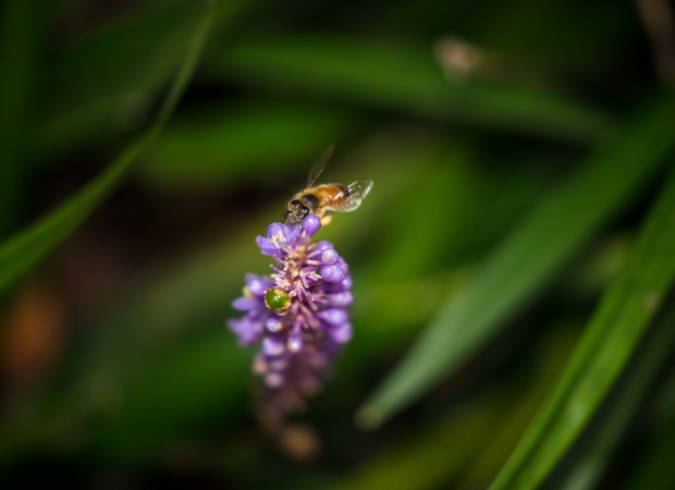 I took this in the garden in the early evening, after noticing the bees descending on the flowers. I got really lucky with getting the single flower in frame, and love the soft texture of the background. Canon 5DS R with 100-400mm lens at 400mm. Speedlite flash.
