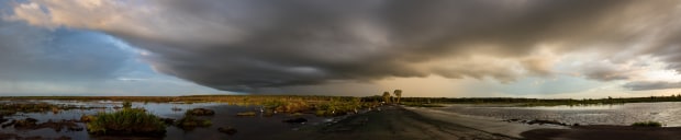 Wet season storm clouds roll in over Fogg Dam wetlands near Darwin, Northern Territory