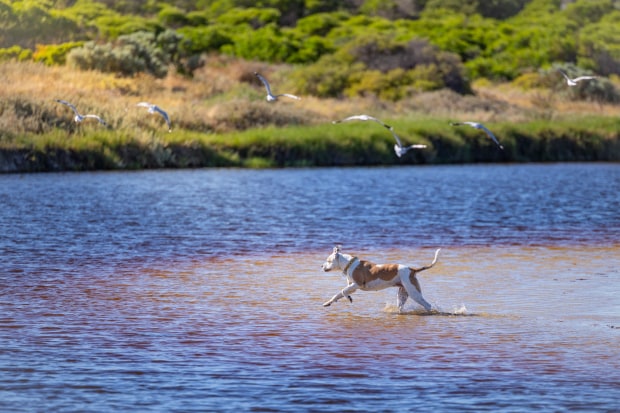 Young at heart staffy Norma enjoying her morning walk. Chasing seagulls, exploring Chapman River Geraldton