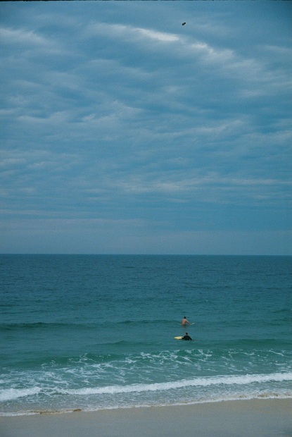 Some last minute surfers catch the waves at Tallebudgera before a summer storm closes in