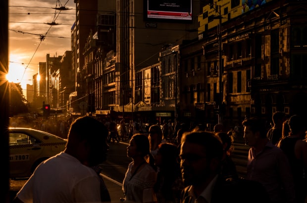 Using an app to keep track of when sunset and sunrise aligns with the Melbourne CBD grid (Melbhenge), yields long shadows and sketches in light.