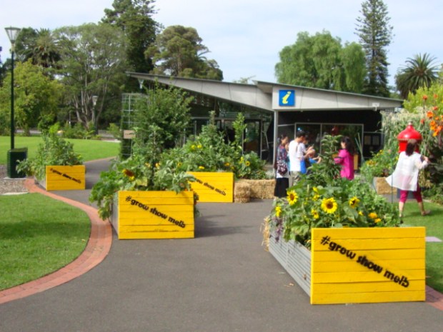 Fitzroy gardens with sun shining and beautiful sunflowers