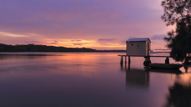 A beautiful sunrise over the Maroochy River, Sunshine Coast. The iconic huts which are privately owned are slowly being restored. Great landscape for sunrise and sunset photo's.