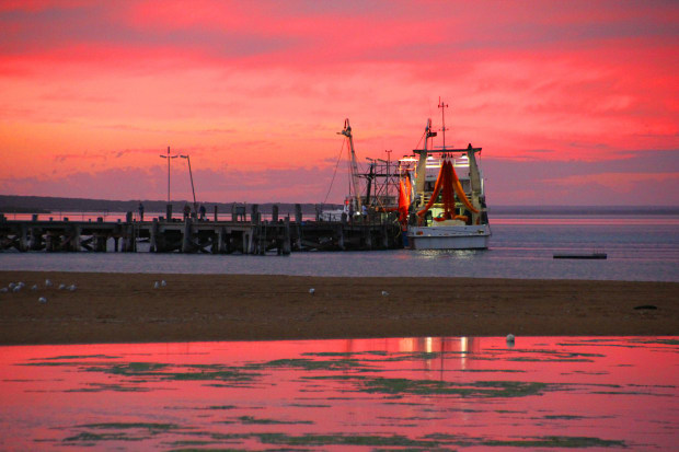 Prawn Trawler hanging their nets at Sunset at Venus Bay SA. Tranquil evening. Canon EOS 60D. Tamron Lens 18-270. f/3.5-6.3