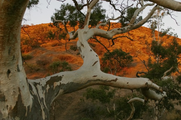 The hillside lit up with an unreal red glow as the sun set in Horrocks Pass, SA.