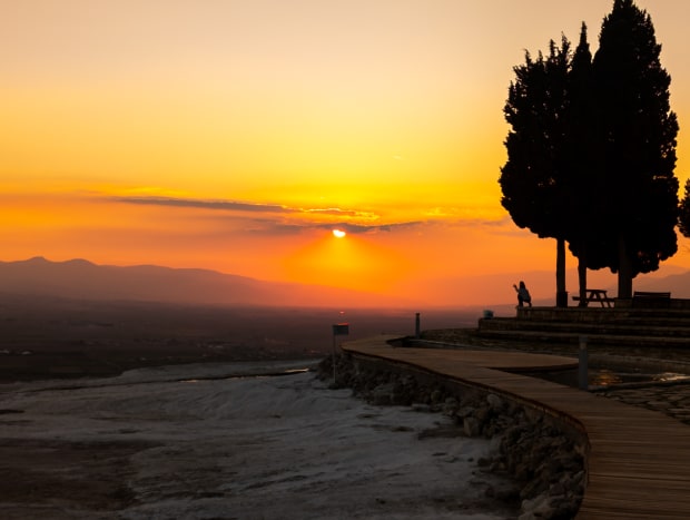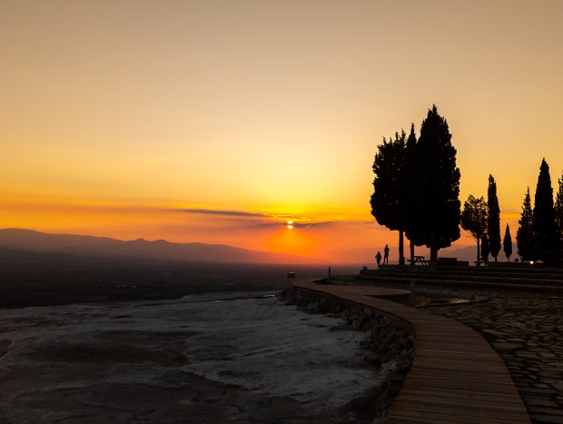 A couple admiring a beautiful sunset in Pamukkale, Turkey