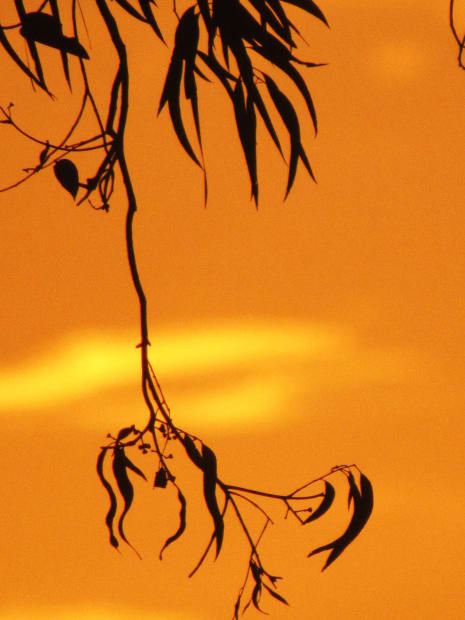 Simple silhouette of eucalypts against a setting sun, NSW, Jan 2017