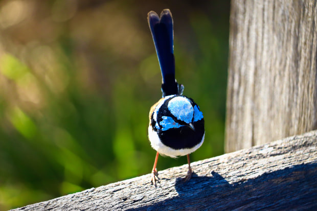 Superb Fairy Wren on an old wooden fence post in Western Sydney