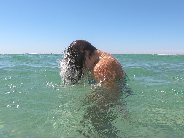 I am fascinated by the patterns that form in the water on her back just moments before she is free from the water.