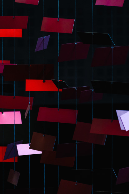 Taken at Hotel Realm, this image captures a suspended installation visible from the foyer and throughout the hotel’s central atrium. I was drawn to the movement of the hanging elements and the way changing light reshaped the colour and mood, shifting between rich crimson, shadow, and glow.