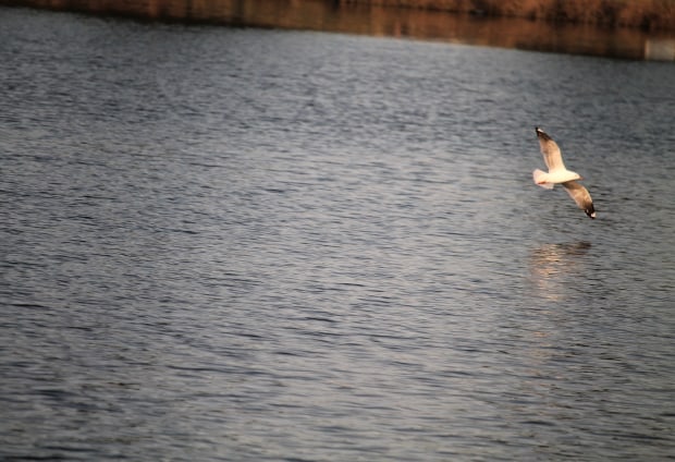 A beautiful Seagull glides across the lake at a picturesque park in Western Australia.