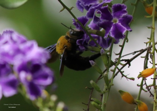 Carpenter Bee enjoying the pollen from a Duranta ‘Sapphire Shower’ bloom.