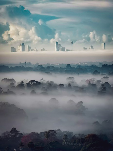 Woke up to see Sydney city and its outskirts covered by the fog with only some of its major landmarks still visible