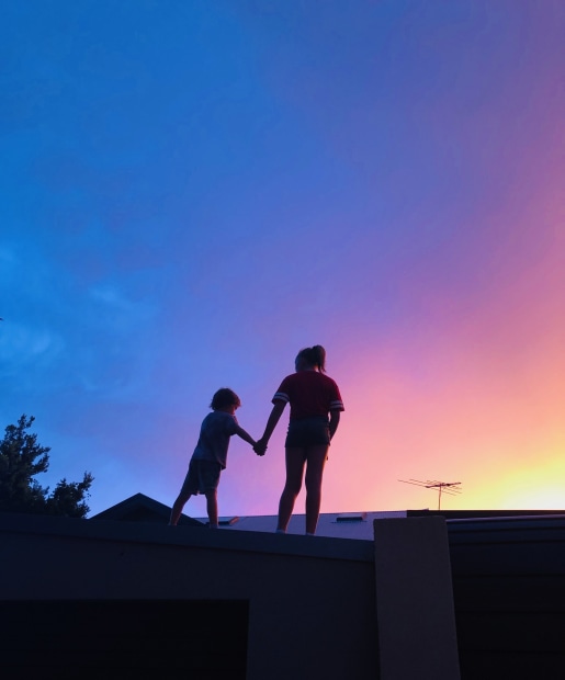 City kids on Rooftops in Sydney, sunset.