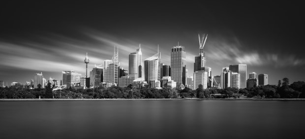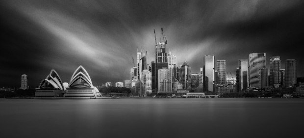 Black & white, long exposure images depicting different views of the Sydney CBD.