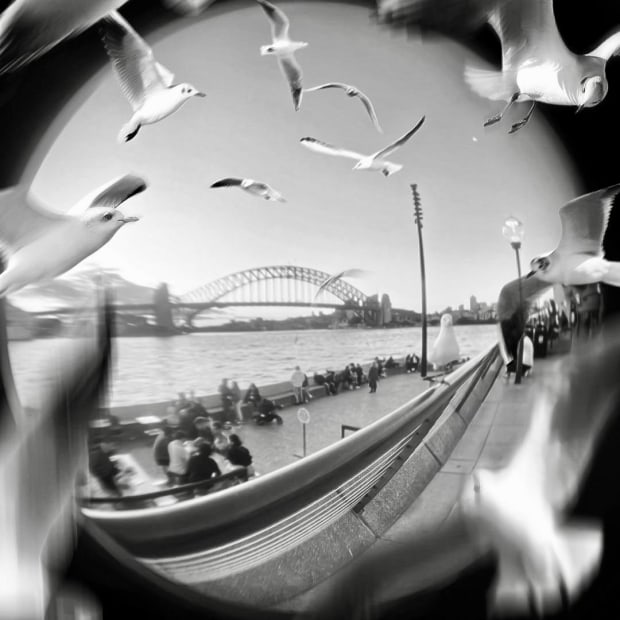 Images capturing a small piece of Sydney water views from various heights and angles.