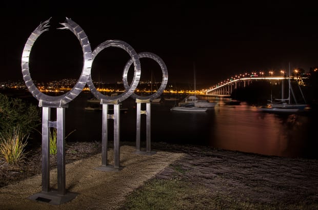 Light painting of the memorial dedicated to the people who lost their lives in the 1975 Tasman Bridge disaster
