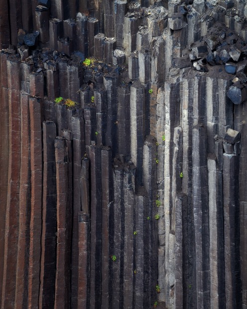 The repeating patterns of the basalt cliff face during a typical Icelandic day.