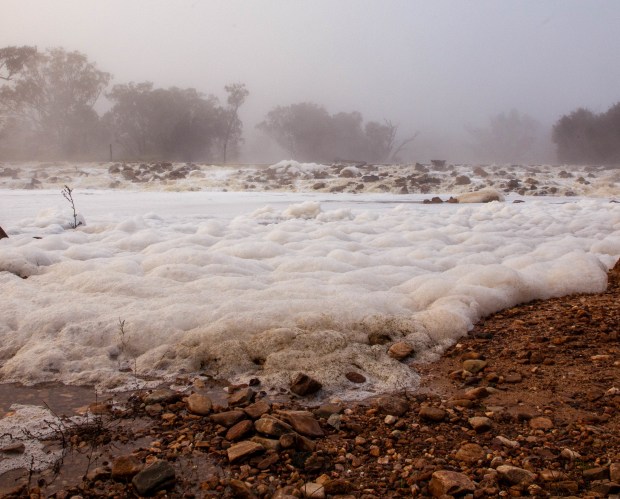 Th Avon River flows over Extracts Weir near Toodyay hours before the annual Avon Descent whitewater race.
