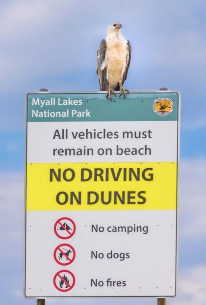 White bellied sea eagle overseeing the rules - watching for those who break the rules? Mungo Beach, Myall Lakes National Park