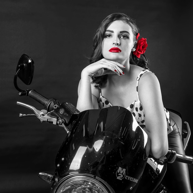 I wanted to emphasize the colour red on this young lady's lips, hair flower and finger nails, but changing the rest of the image to mono.