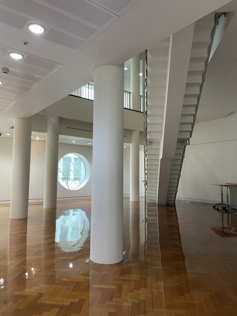 Parliament House Canberra , circles staircase, polished wooden floor, column all combined to form this visual artwork