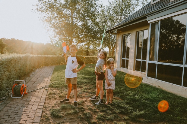 I love seeing kids outside playing. This is a moment of cousins together playing in the backyard and the warm sun making it even better
