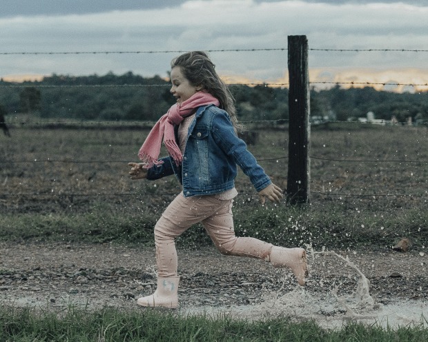 Capturing the small joy a rainy day can bring a child.