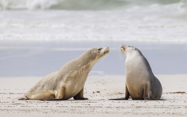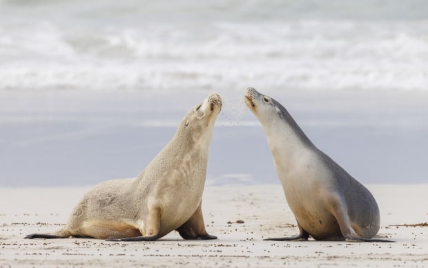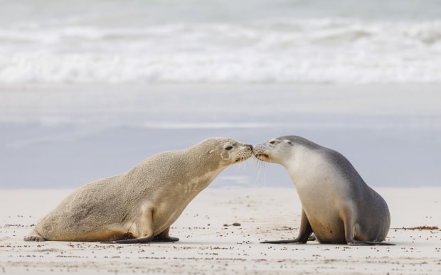 Australian Sea-Lions interaction - sealed with a kiss. Taken at Seal Bay Conservation Park, Kangaroo Island South Australia