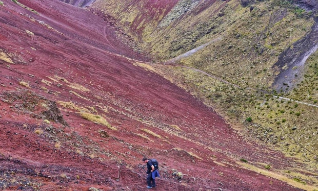 The last walker leaving a crater of New Zealand volcano