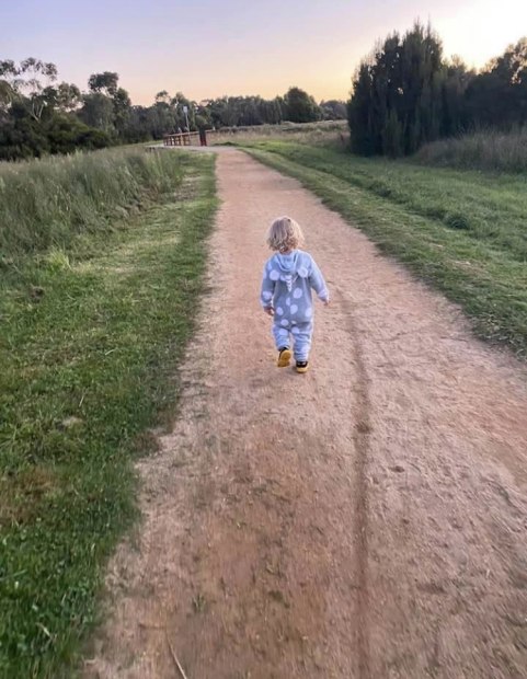 Photo of my 2 year old boy walking casually through our local park. The day we entered stage 3 lockdown. Nobody around, not much open, unable to play on the playg equipment... but we could walk.