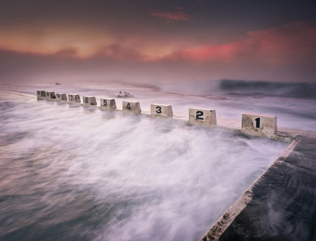 Merewether Ocean Baths photographed from different locations, with different weather and very different light.