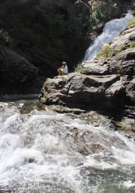 Capturing a stranger's moment as they sit amongst the moving nature around them. Taken at a waterfall in Sri Lanka.