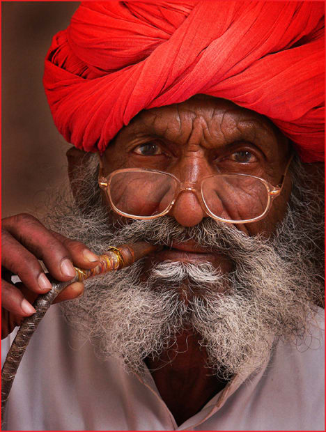 Rajasthani Opium smoker. Background darkened. Sharpened.
