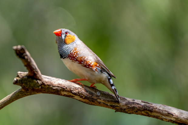 A Zebra Finch perching on a branch at Cleland Wildlife Park in Adelaide