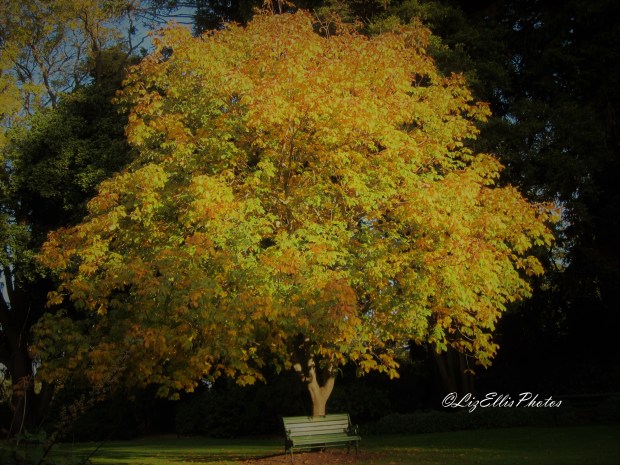 Liz Ellis, The Seat Under The Autumn Tree (May theme: Trees and Plants)