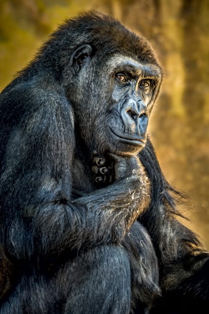 Female Lowland Gorilla bathed in afternoon light at Taronga Zoo