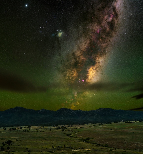 The Tinderry Mountains loom above Michelago; they are rugged and impenetrable. It was cold as anything as I lugged my gear to a spot where the Milky Way would align well, and it was easy to get lost in the dark, among the brambles. But the airglow was vivid as ever, and the night sky dark. Tech details: The sky is a mosaic of six photos stitched in lightroom, tracked at 2 minutes at f2.8, ISO 800. Foreground is two shots at about 5 minutes at f2.2. Shot with Sigma 50mm f1.4 ART on Nikon D750.