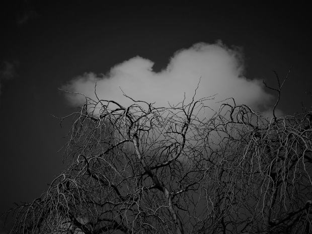 The different textures of the winter bare tree and the soft fluffy white cloud caught my eye
