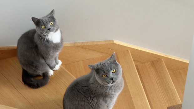 At the exact same second, both cats lifted their heads toward an unseen sound. Maybe it was a bird, maybe a dream, maybe a secret only cats can hear. Whatever it was, it made them look like characters from a tiny adventure tale.
