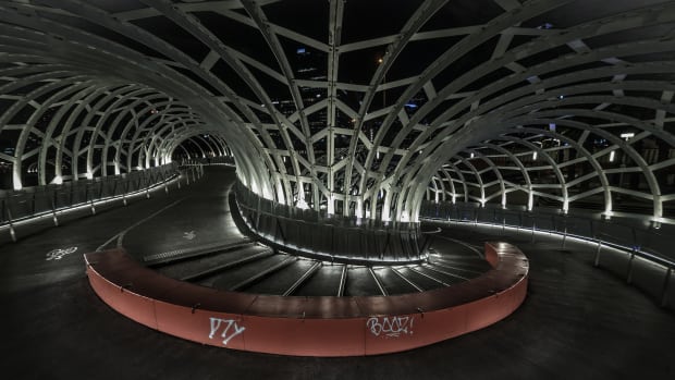 Night exploring through Melbourne. - A wide angle shot from a precarious railing in the middle of Webb Bridge. Trying to find the unique take on this much photographed bridge.