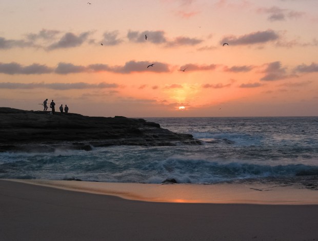 Gulls circle, waiting for scraps as the fishermen pack up. Coastal gorge, Kalbarri.