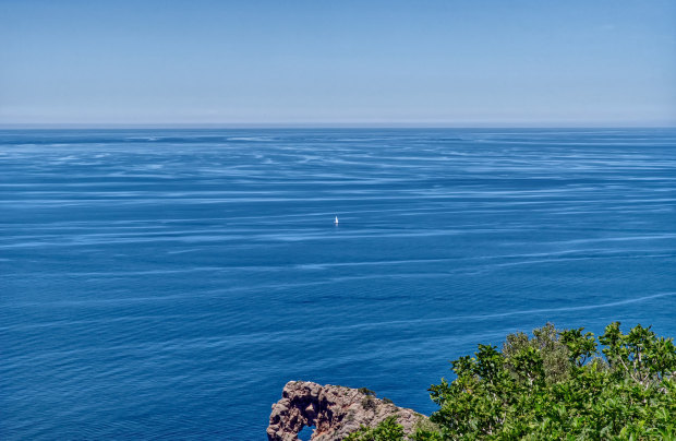 Tiny Boat in a Big Ocean in the Mediterranean Sea phot taken from Mallorca