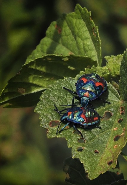 Found these two when out taking photos. They are so colourful and stand out on the green leaf.
