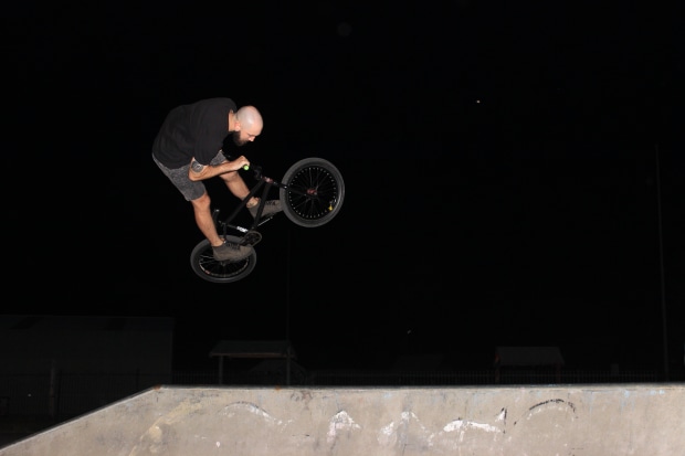Action shot of joel jumping to the moon