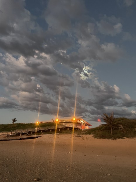 Cable Beach post sunset, looking back toward the surf club and stairs.