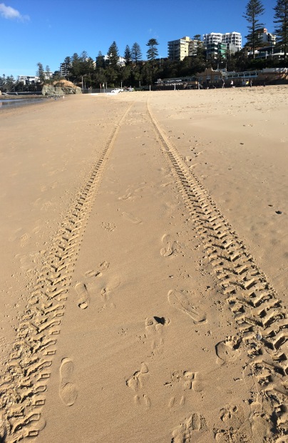 Beach patrols trails left behind at Bondi beach.