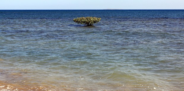 This mangrove tree grows on the rocky substrate of the beach near Karratha in Western Australia and is repeatedly submerged to over half its height with each tidal cycle.