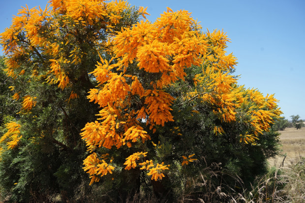 Western Australian Christmas tree. The display of intensely bright flowers during the austral summer coincides with the Christmas season. On the way to the town of Eneabba in W.Australia.
